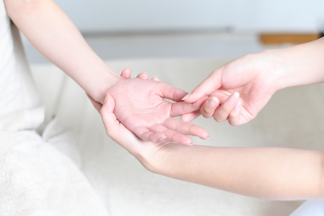 手には全身に影響する 「反射区」があり、アロマオ イルを使いながら反射区を刺激していくことで、 アロマオイルの持つ効果・効能とマッサージの皮 膚への心地よい刺激による相乗効果で痛みの緩 和やリラックス効果を実感することが出来ます。